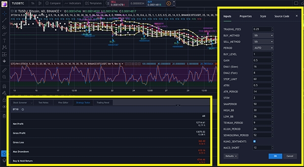 - Оптимизируйте свои настройки для Gunbot с помощью имитации тестирования в TradingView, не рискуя своим капиталом.