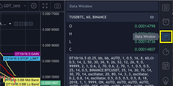 Чтобы увидеть показания «консоли», откройте «Окно данных» и наведите курсор мыши на свечу, это может быть полезно для устранения неполадок, а также позволит увидеть цветовую кодировку графиков (неактивные синие).